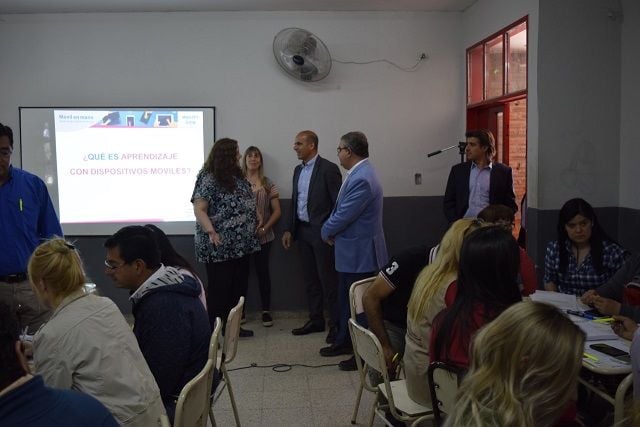 El intendente de SFVC, Raúl Jalil, participó hoy junto al director general de operaciones del grupo Telecom Argentina, Roberto Nobile, de la presentación del programa "Nuestro Lugar", que se llevó a cabo en la escuela municipal N°3 del B° Eva Perón con la primera capacitación para docentes, con propuestas para incorporar los dispositivos móviles al aprendizaje en el aula.