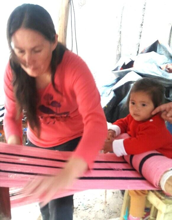 Mujeres Tejedoras de Ponchos, en telares artesanales, quienes realizan todo el