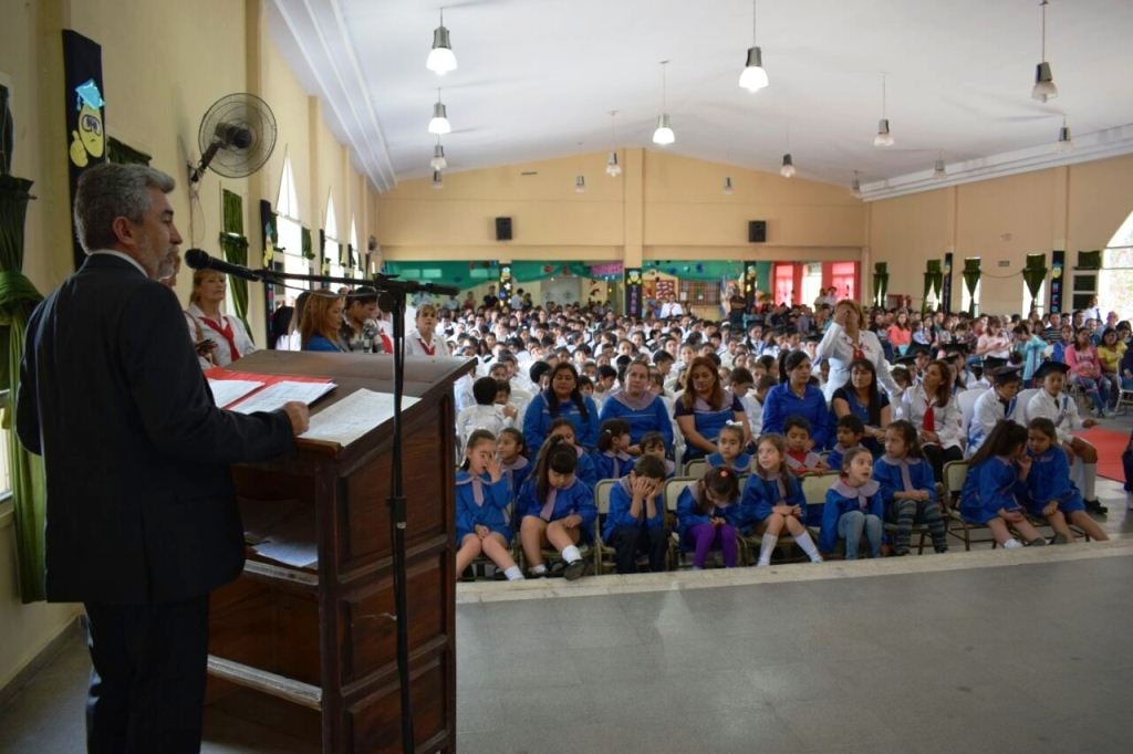 En su alocución, el ministro de Educación destacó la importancia de la escuela como herramienta de cambio social y a la responsabilidad y participación de la sociedad en ese cambio “estamos cerrando otro ciclo lectivo, despidiendo a una nueva promoción de egresados en esta escuela y en ellos depositamos toda nuestra fe, de que su trayecto escolar les va a abrir las oportunidades para el camino que sigue, para la escolarización que continua y más adelante para la vida en general. La escuela tiene que ser especialmente una fábrica de oportunidades, todos somos producto de la escuela, ya que hemos iniciado nuestro acceso a la sociedad a través de ella. La escuela no es asunto solamente del Ministerio de Educación o de los docentes, es un asunto de la comunidad, el interés de su funcionamiento es un interés público, en el sentido más genuino de su palabra, es la sociedad la que debe velar por los logros de nuestros chicos en la escuela".