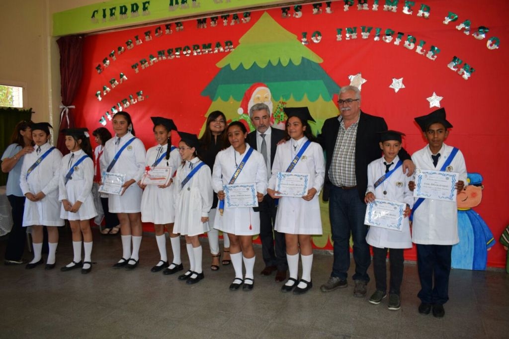 El ministro de Educación, Daniel Gutiérrez, acompañado por el intendente de Los Altos, Rafael Olveira, la jefa de Gabinete de Educación, Belkys Vera y directores de nivel de la cartera educativa, cerró oficialmente el ciclo lectivo 2017 en la Escuela Primaria N° 171 de Los Altos, departamento Santa Rosa.