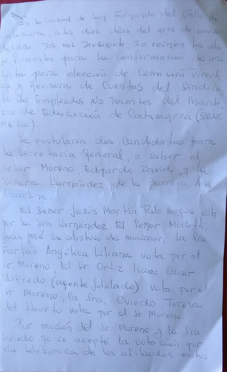 "reunión y acta a cual aduce Moreno, quedó sin efecto, por encontrarse