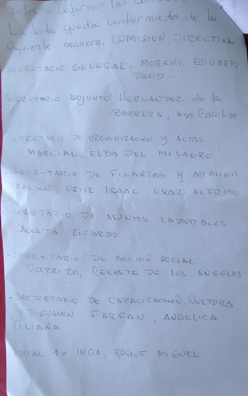 parte de la actual conducción del gremio para que no fuera inscripta la