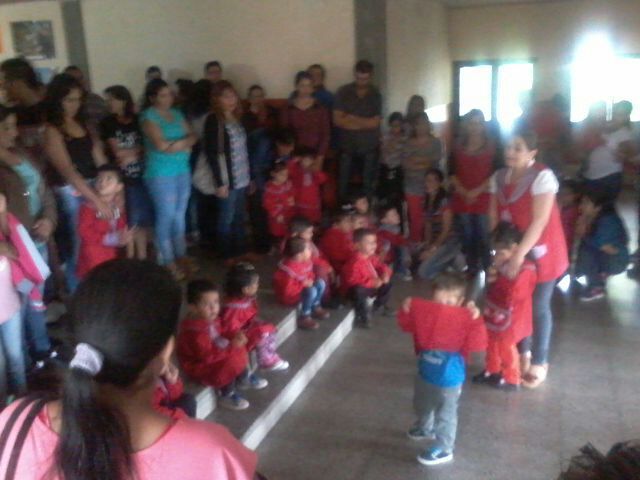 mientras que los niños de la salita de 3 añitos en un aula prestada de la