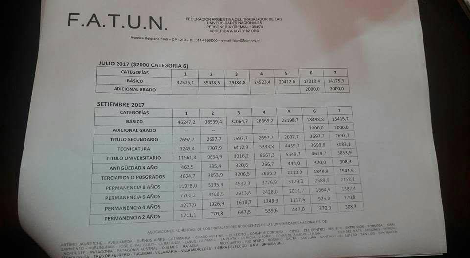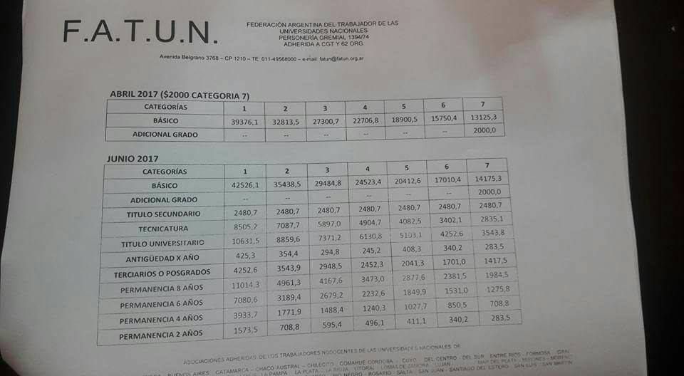 las Universidades Nacionales (Fatun), representada por el secretario general,