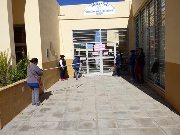 El personal de servicios generales de la N° 995 se sumó en horas del mediodía al reclamo ya