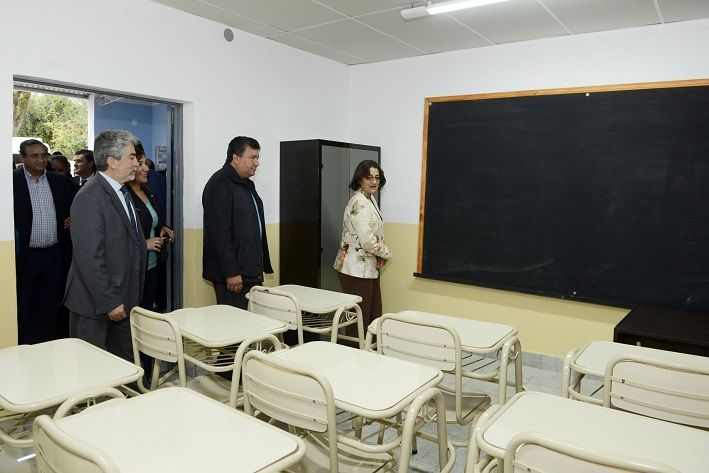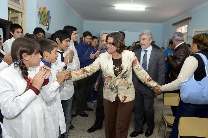 La mandataria fue recibida por el intendente Omar Soria y estuvo acompañada por el ministro de Educación, Daniel Gutiérrez; el ministro de Obras Públicas, Rubén Dusso; el diputado nacional, Néstor Tomassi; el diputado Armando López Rodríguez; el senador Jorge Solá Jais y el director de la Escuela, Sergio Soria, entre otras autoridades.