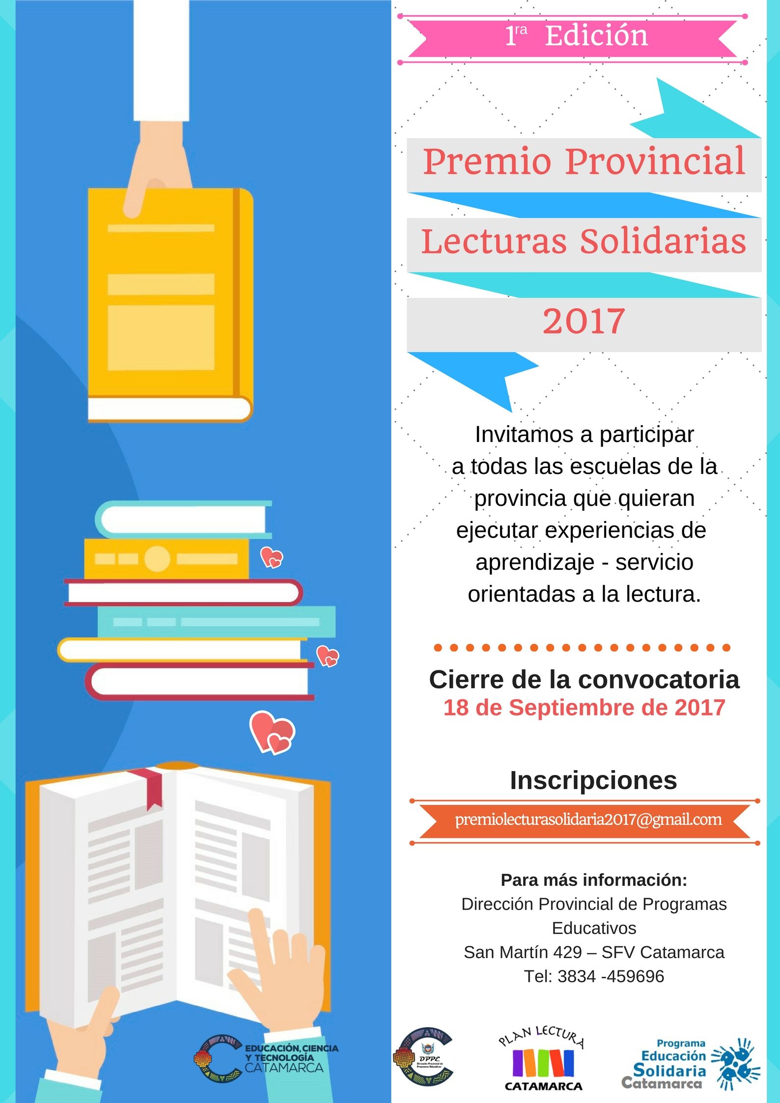 con la ficha de inscripción del Premio Provincial "Lecturas Solidarias” 2017,