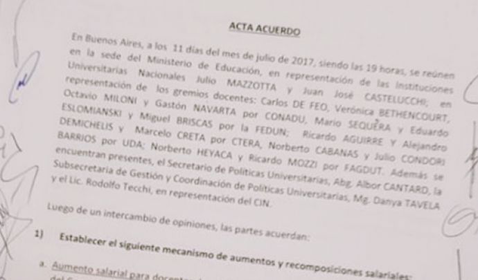 Los gremios de docentes universitarios acordaron incrementos promedio del 25% con autoridades del ministerio de Educación, luego de más de cuatro meses de conflicto con paros y movilizaciones en todo el país.