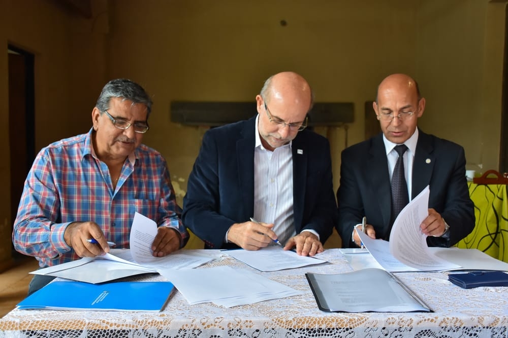 En Tapso, departamento El Alto el rector de la UNCA, Ing. Flavio Fama y el decano de la facultad de Tecnología y Ciencias Aplicadas, Ing. Carlos Savio, firmaron un convenio con el intendente de esa localidad, Jorge Coronel, para la puesta en marcha de la tecnicatura en Higiene y Seguridad el próximo año.