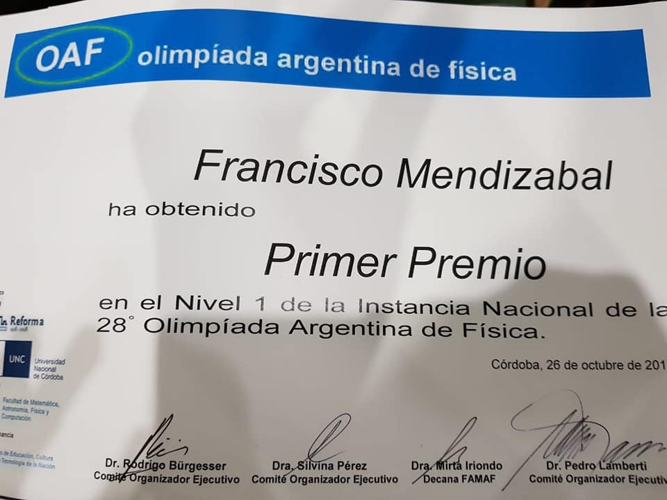 La final de las Olimpiadas de Física se desarrolló en Carlos Paz, y el catamarqueño obtuvo medalla de oro entre 100 participantes de todo el país.