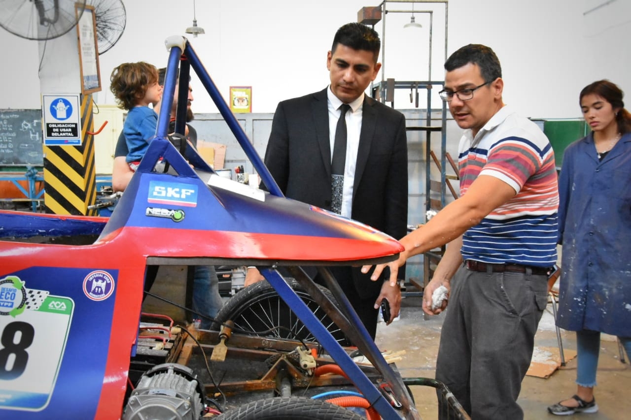 En la mañana de este lunes, el secretario de Salud y Protección Ciudadana, Juan Manuel Zelarayán, estuvo con los alumnos y docentes de la Escuela Preuniversitaria ENET Nº 1, quienes presentaron un innovador auto eléctrico y ecológico, como parte del proyecto “Desafío Eco YPF 2018”.