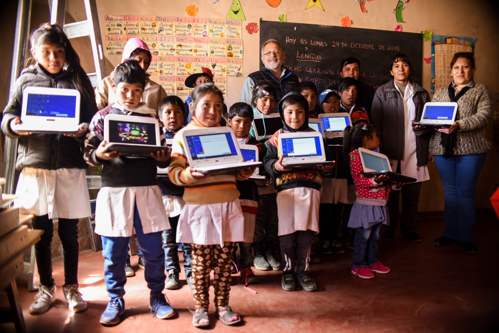 En un acto de inclusión educativa e igualdad de oportunidades con nuestras comunidades inhóspitas, el senador Jorge Solá Jais a cargo de la presidencia de la Cámara de Senadores, entregó netbooks en los parajes de Carachi y Laguna Blanca, distrito Villa Vil, departamento de Belén, junto al facilitador técnico pedagógico del Plan Aprender Conectado, Diego Soto.