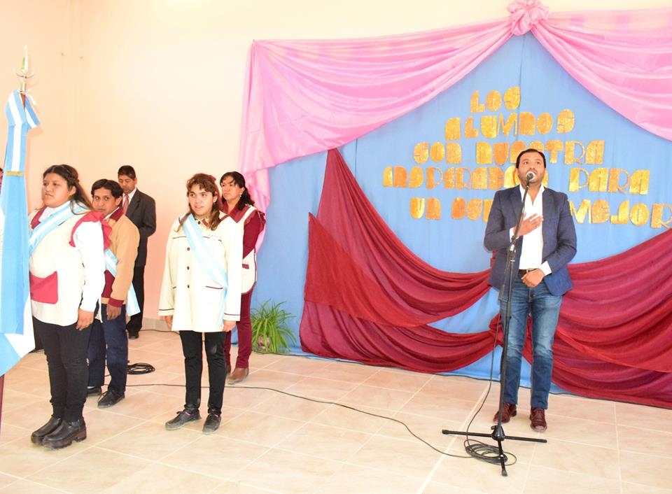 El intendente Juan Pablo Sánchez, junto con la Directorad Prof. Patricia Lagoria, el presidente del Concejo, Prof. Fernando Cuello, y concejales de ambos bloques, el director del Área Programática Nº12, Dr. José Bustamante, Jefe de Zona “D” Comisario Aguirre, Jefe de Comisaría Comisario Arnedo, referentes de las instituciones intermedias, miembros del Gabinete Municipal, profesores y alumnos, dejó inaugurado el salón de usos múltiples, con el que cuenta desde ahora dicha institución.