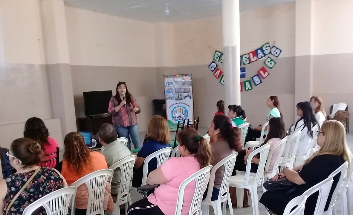 La charla - taller estuvo enfocada en el eje de alimentación saludable y celiaquía para que los docentes puedan trabajar en lo que queda del año, y puedan desarrollar proyectos de alimentación saludable en la institución para el próximo año.