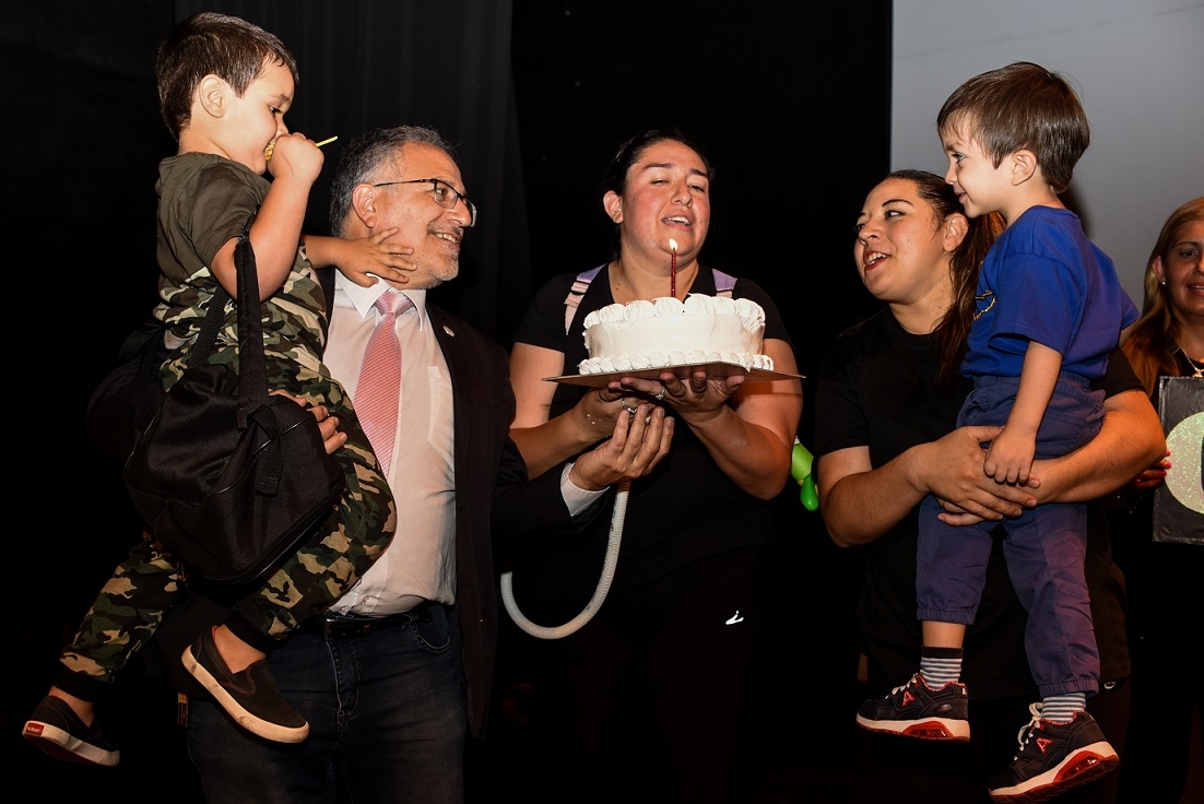 Como no podía ser de otra manera, cada festejo tiene su torta y en esta oportunidad, niños y seños acompañaron al Presidente de la Cámara a soplar la velita por estar cumpliendo un año más de vida. No faltaron los carteles y el feliz cumpleaños cantado por todos.