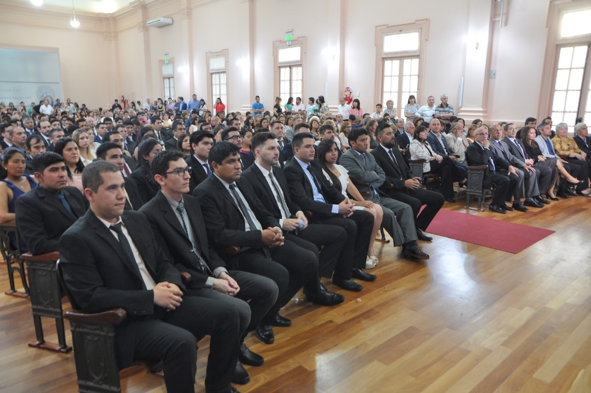 Formaron parte del imponente marco en el Aula Magna de la casa de altos estudios, el vicedecano de dicha Facultad, Ing. Eduardo Cano, decanos de otras Facultades, secretarios, subsecretarios, directivos, docentes, no docentes, estudiantes, padres, familiares y amigos de los flamantes egresados.