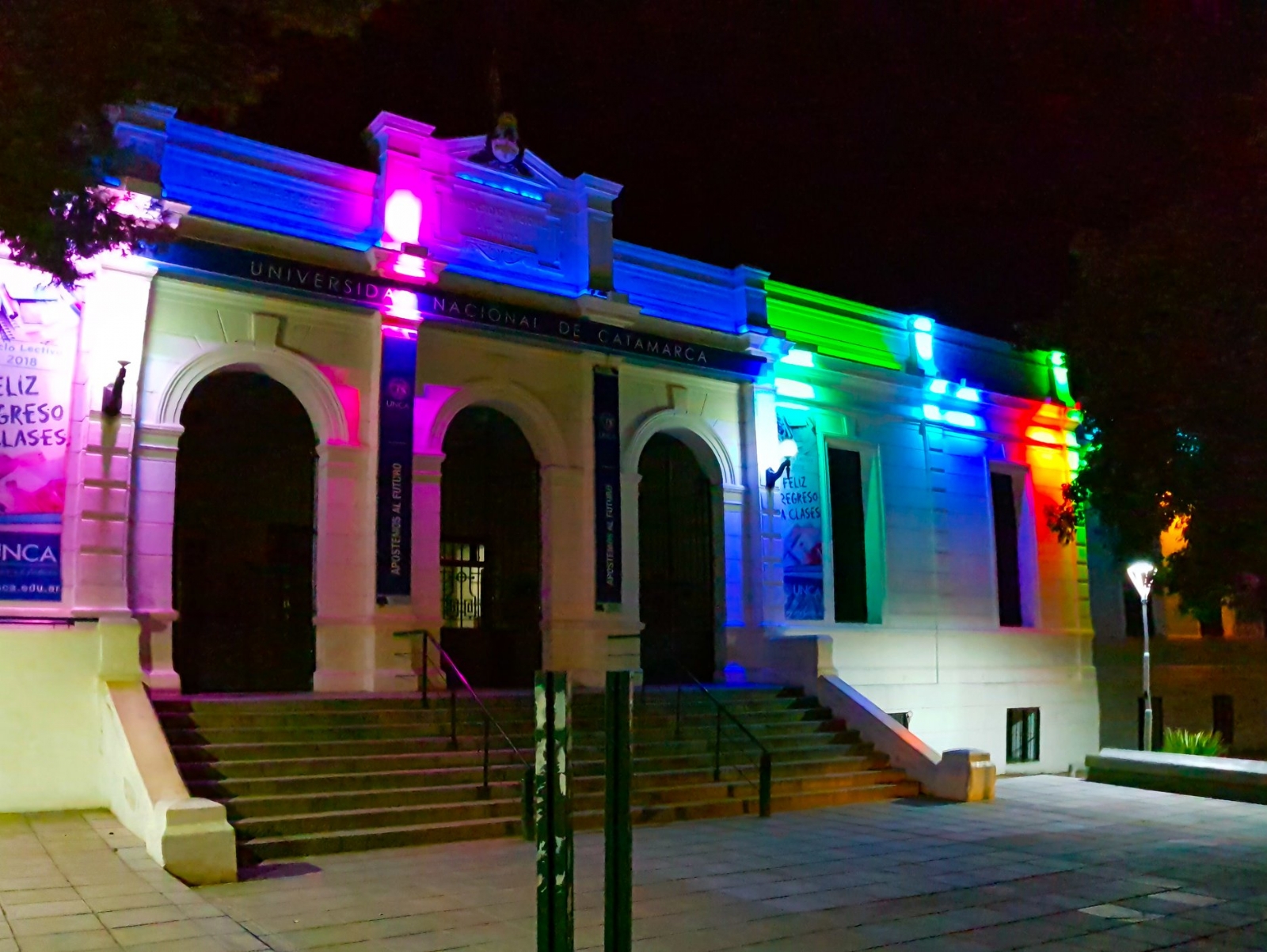 La UNCA iluminó durante toda esta semana su fachada con los colores representativos de la ONG (fucsia, azul, verde, amarillo y violeta).