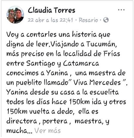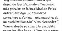 Voy a contarles una historia que digna de leer. Viajando a Tucumán, más preciso en la localidad de Frías entre Santiago y Catamarca conocimos a Yanina, una maestra de un pueblito llamado "Viva Mercedes".