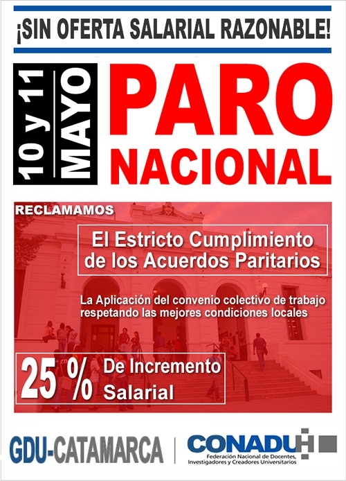 El paro es convocado por la CONADU Histórica a nivel nacional y en Catamarca adhiere el Gremio Docente Universitario.