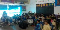 Este nuevo itinerario comenzó con funciones en el JIN Nº 7 de la Escuela 182 “Luis Leopoldo Franco” –ampliación 1- , donde alumnos y docentes de los turnos Mañana y Tarde, disfrutaron proyecciones de títulos infantiles de producción nacional.
