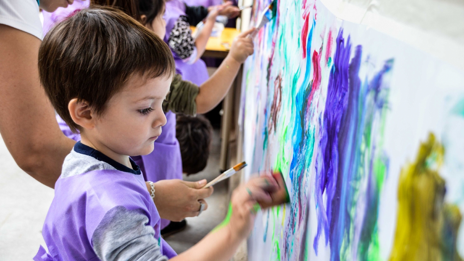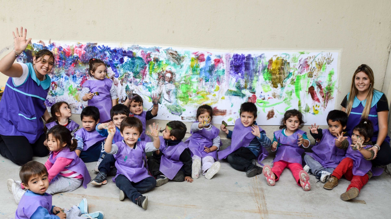 “Se trata de impulsar a los niños a dejar huellas, a crear formas y experimentar con colores y lo importante es que así expresan sus emociones y sentimientos; trabajando también con un despliegue motriz y el eje de sus obras está puesto en la acción que realizan para pintar”, agregó Barros.