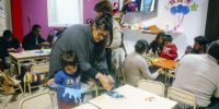En este taller de manualidades, padres y niños usaron todo tipo de materiales coloridos para crear las coronas que luego lucieron en un gran desfile todos juntos.