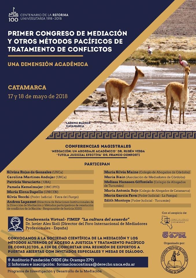 Provincias como Tierra del Fuego, a través de su Escuela de Capacitación Judicial en Mediación, estarán presentes, al igual que Córdoba y Tucumán”, adelantó, agregando que la convocatoria no es solamente destinada para integrantes de espacios judiciales que se dedican a aplicar la Mediación, sino también para colegios de profesionales.