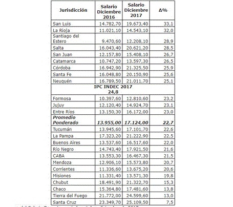 Según publicó Urgente24, la variación anual del salario docente promedio para el período 2016-2017 fue de 22,7%, por debajo del índice inflacionario publicado por el INdEC, de 24,8%, y con una gran disparidad entre las 24 provincias, destaca el último informe del CEA de la UB.