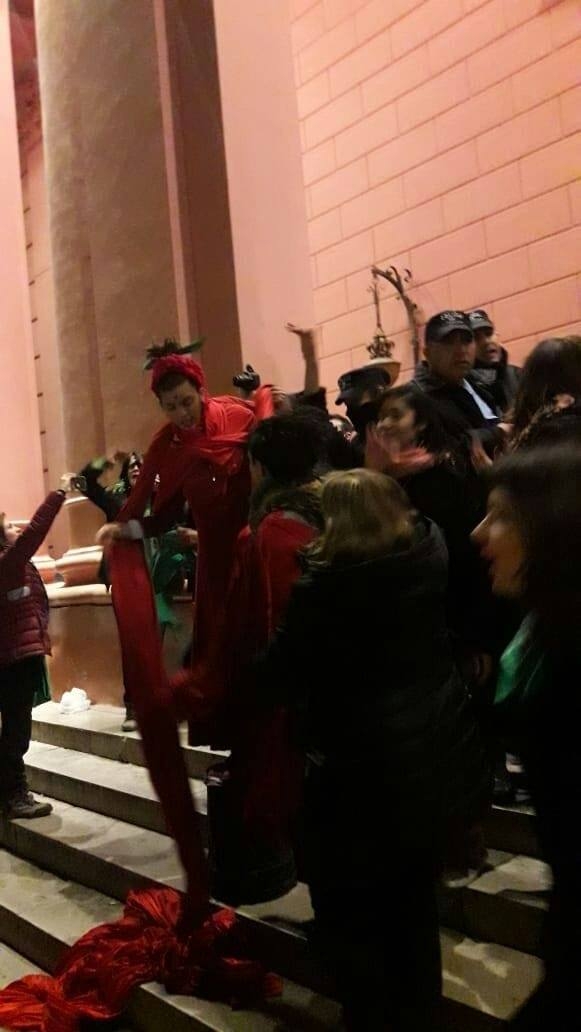Mientras en la Catedral se estaba celebrando misa, alrededor de diez personas autoconvocadas se acercaron con banderas y gorros celestes a favor de la vida, primero estuvieron en frente de Casa de Gobierno y luego se acercaron a las puertas de la Catedral donde se enfrentaron con las personas que estaban manifestándose a favor de la legalización de IVE. Inmediatamente un cordón policial dividió las partes a fin de evitar choques que pasen a mayores. Cabe destacar, que el grupo que se manifestó por la vida, son autoconvocados, ya que la Diócesis organizó otras actividades como campanadas, misa y oración en cada parroquia.