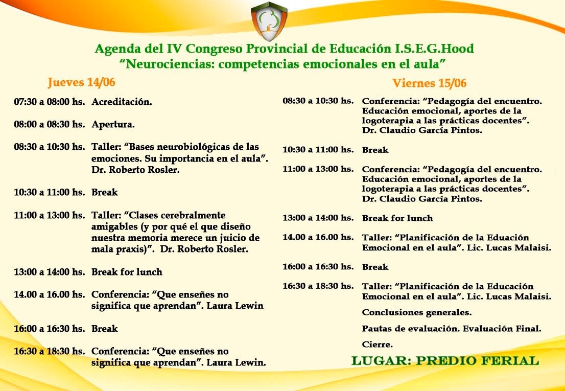 En la ocasión disertarán cuatro profesionales de reconocida trayectoria en el tema. Este jueves será el turno del doctor Roberto Rosler, con dos talleres "Bases neurobiológicas de las emociones. Su importancia en el aula" y "Clases cerebrales amigables". Luego disertará Laura Lewin presentando "Que enseñes no significa que aprendan".