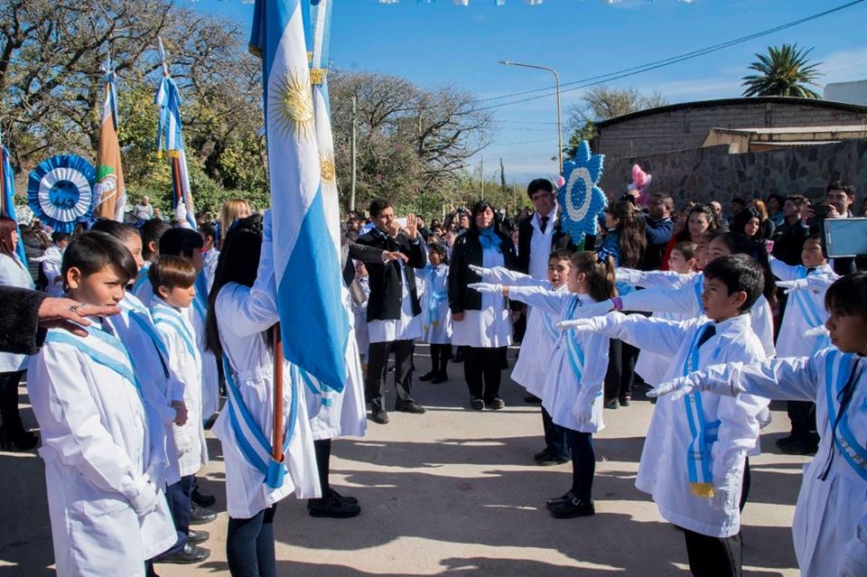 El acto presidido por el Intendente Guillermo Ferreyra, inició con la inauguración del nuevo ingreso al departamento, obra que jerarquiza al principal acceso que tiene la localidad de San Antonio, a continuación se realizó el izamiento y presentación de la Bandera Argentina confeccionada por las escuelas primarias del departamento, ambas obras fueron reconocidas mediante el descubrimiento de placas y la entrega de un reconocimiento especial al vecino Jorge Vega, quien colaboró con su máquina de coser y experiencia, en la confección de la enseña patria.