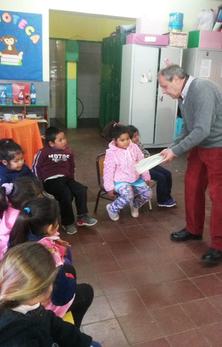 Otra de las instituciones educativas visitadas por el reconocido escritor fue el Jardín de Infantes de Pozo El Mistol, en el departamento Valle Viejo, donde junto a los niños y docentes se compartieron juegos, canciones, la lectura y coloreo de libros, entre otras actividades alusivas al Mes del Libro.