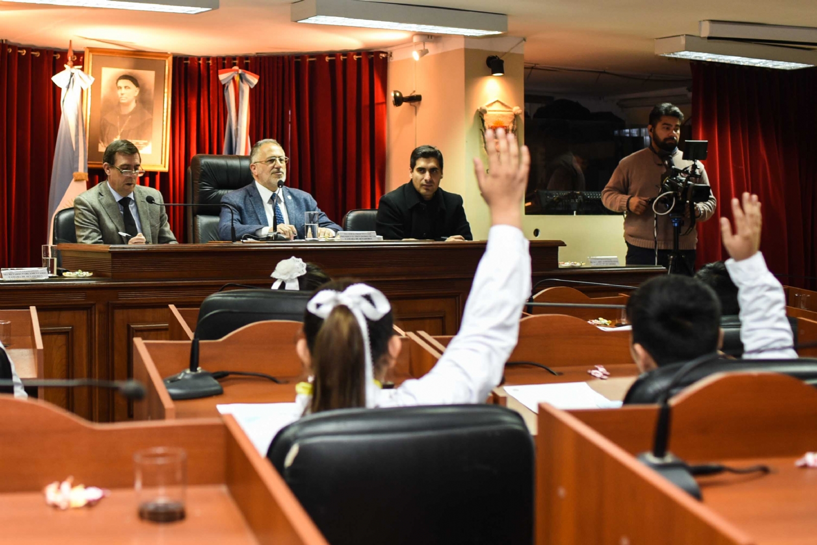 Declarado de Interés Parlamentario por la Cámara alta provincial, los niños de 5° y 6° grado fueron recibidos por los senadores Ramón Edgardo Seco, Ariel Cordero y Mario Carrizo, se reunieron en el recinto de sesiones para llevar adelante su segundo día de trabajo legislativo presidido en la oportunidad por el presidente provisorio del Cuerpo Jorge Solá Jais.