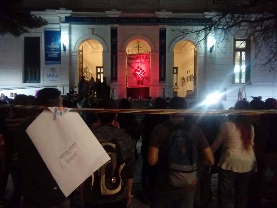 Por la noche, se concretó la vigilia en el hall de la Facultad de Humanidades que se extendió durante la madrugada.