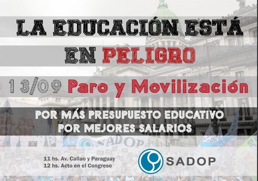 “El ajuste no es el camino, por eso SADOP realizará la medida de fuerza, ya que el desfinanciamiento en educación es el peor horizonte que puede tener un país”, expresaron a través de un comunicado desde el Sindicato Argentino de Docentes Privados (SADOP).