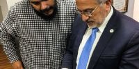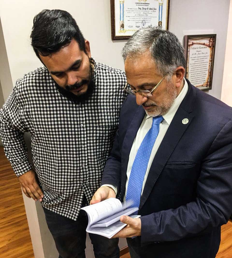 El presidente provisorio de la Cámara Alta Jorge Solá Jais, recibió esta mañana al representante de la Federación de Estudiantes Terciarios de la Provincia, Emilio González Vera, en el marco de la entrega de 7 mil libretas estudiantiles impresas por el área de Publicaciones Legislativas del Senado de Catamarca.