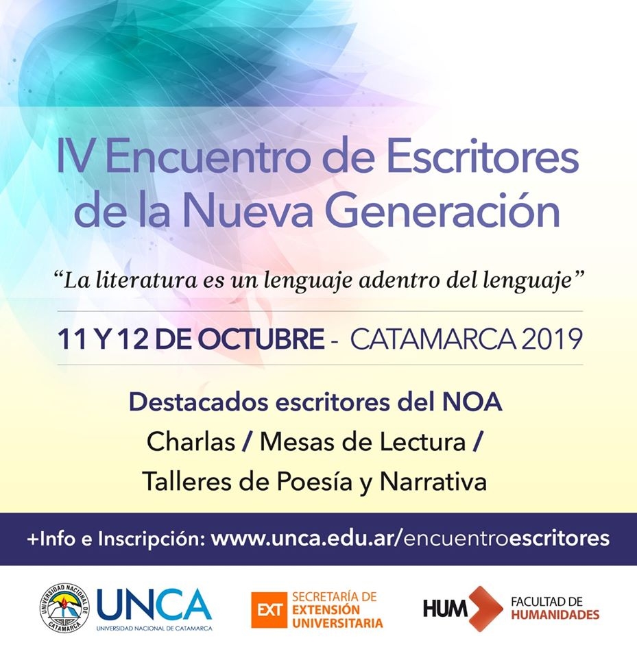 Inscripciones: http://www.unca.edu.ar/encuentroescritores?fbclid=IwAR1S3hF4ZIK_szS5AuTGO-bkjNTIlh_gOhWcBV_rCZ-wNEmVhx0rNbr3mvY