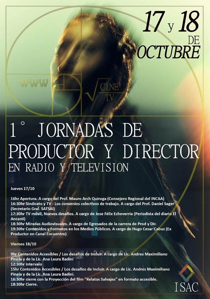 La carrera de Productor y Director para radio y televisión que se dicta en el Instituto Superior de Arte y Comunicación (ISAC) organiza las 1° Jornadas de Producción y Dirección de radio y televisión. La capacitación se llevará a cabo los días jueves 17 y viernes 18 en la sede del instituto, ubicada en San Martín 1140.
