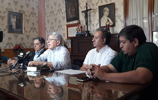 Esta mañana, el Vicario de Educación, Pbro. Oscar Tapia, junto con los representantes legales de los colegios Padre Ramón de la Quintana, Juan Pablo II y Nuestra Señora del Valle, Lic. Rubén Marti, Lic. Luis Herrera y Lic. Jorge Leguizamón, respectivamente, brindaron una conferencia de prensa, en el transcurso de la cual plantearon la situación económica de los colegios privados confesionales, a partir de una resolución ministerial que establece el cobro de la matrícula de manera diferente a la que se estaba aplicando hasta ahora.
