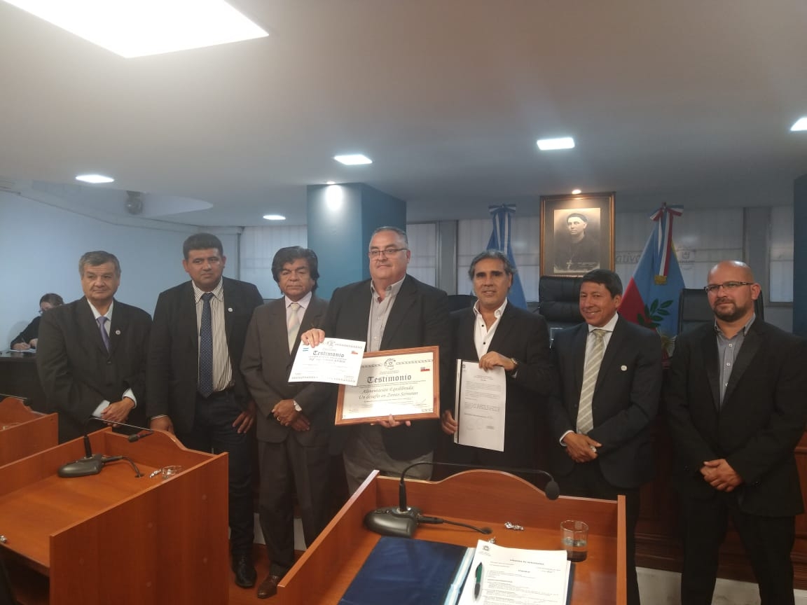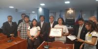 En la oportunidad el senador Raúl Chico acompañado de sus pares hizo la entrega de distinción provincial al profesor Luis Eduardo Ramos encargado del proyecto “Alimentación Equilibrada: Un desafío en Zonas Serranas" que presentó la Escuela Secundaria N°11 "Abel Acosta” en la Feria Nacional de Ciencias.