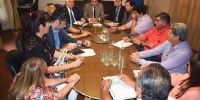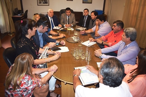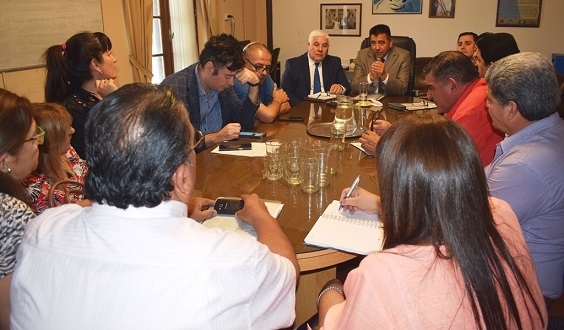 El ministro de Educación, Francisco Gordillo acompañado por parte de su gabinete, se reunió hoy con representantes de los seis gremios docentes: Nancy Agüero representante de UDA, Silvia Bustamante de SADOP, Juan Godoy de SUTECA, Sergio Guillamondegui del gremio SIDCA, Mario Sánchez secretario de ATECA y Olga Ponce de León de ADUCA.