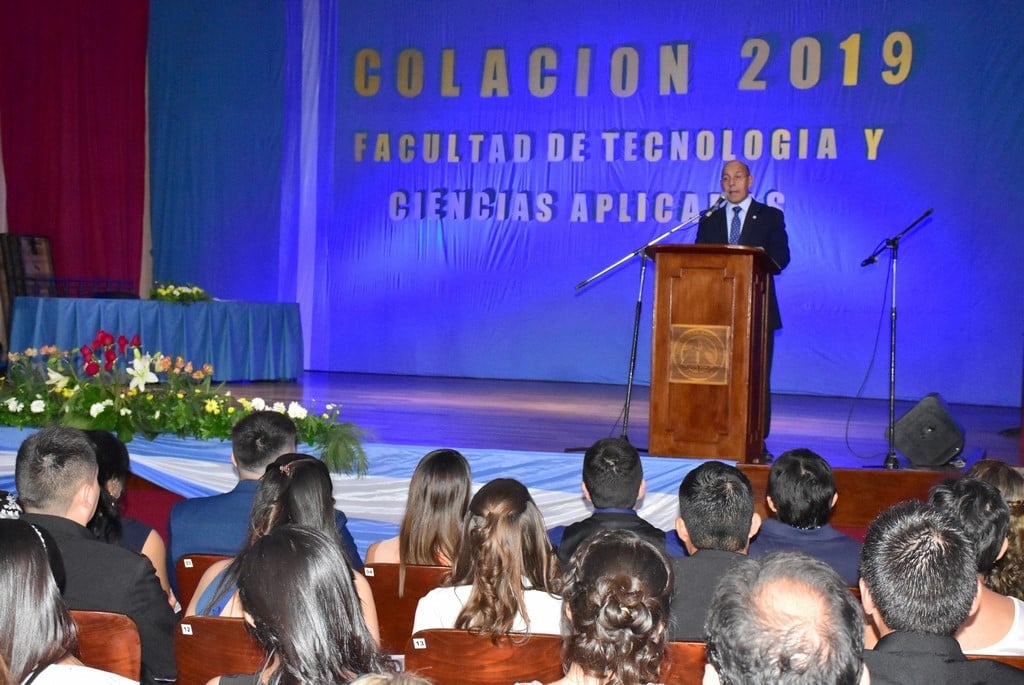 La ceremonia estuvo presidida por el Rector de la UNCA, Ing. Flavio Fama, acompañado por la vicerectora, Dra. Elina Silvera de Buenader, el Decano y vicedecano de la Facultad de Tecnología y Ciencias Aplicadas, Ing. Carlos Savio e Ing. Eduardo Cano, respectivamente.