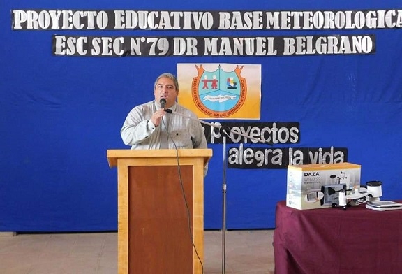 Estuvo presente en el qcto, el Vicedecano de la Facultad de Ciencias Sociales de la Universidad Nacional de Catamarca, Lic. Faustino Abarza y el docente Coordinador de la Cátedra Climatología, dando inicio a la Estación Metereológica Escolar.