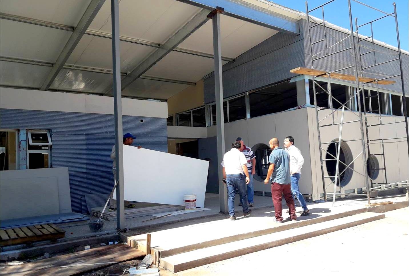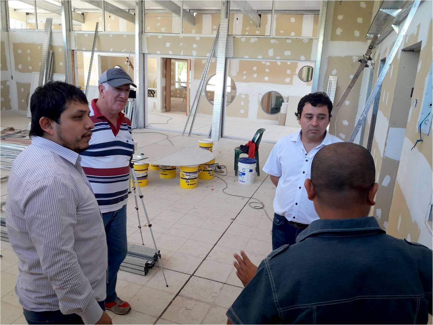 El Intendente municipal Dr. Sebastián Nóblega, acompañado del Concejal Circuito Centro, Pedro Chaile, del Secretario de Obras Públicas Daniello Cerezo y del Director de Obras Oscar Barbieri, visitó los avances de la edificación del Jardín de Infantes, un Salón de Usos Múltiples y de oficinas administrativas que se construyen en el predio de la Escuela Normal ‘Libertador General San Martín’. Haciendo su ingreso por calle Catamarca, por donde será originalmente el frente del Jardín, las autoridades fueron recibidas por el arquitecto Julio Cortéz Castro, encargado de la obra que ejecuta la empresa COBA SRL, quién los invitó a recorrer las instalaciones y comentarles sobre los avances que se llevan adelante en cuanto al proyecto. Este sistema de construcción es novedoso y revolucionario para nuestra ciudad denominado ‘Steve From’, que se construye ‘en seco’ que facilita la ejecución de la obra y comprende perfilería metálica y placas de yeso. Prácticamente su avance es de un 85% y se estima que para mediados del mes de Marzo próximo estará finalizada. Esta estructura que se levanta en los plazos establecidos por la empresa, se realiza en un total de 500 metros cuadrados y contempla 3 salas para niños de jardín y primaria, sanitarios, un SUM y un sector de administración.