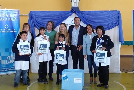 Más de 3 mil niños recibieron esta ayuda que implementó el gobierno de Lucia Corpacci para todas las escuelas de la provincia, tanto primaria como secundaria. Una inmensa alegría se vio en la cara de los alumnos de distintas escuelas que estuvieron presentes en el polideportivo municipal.