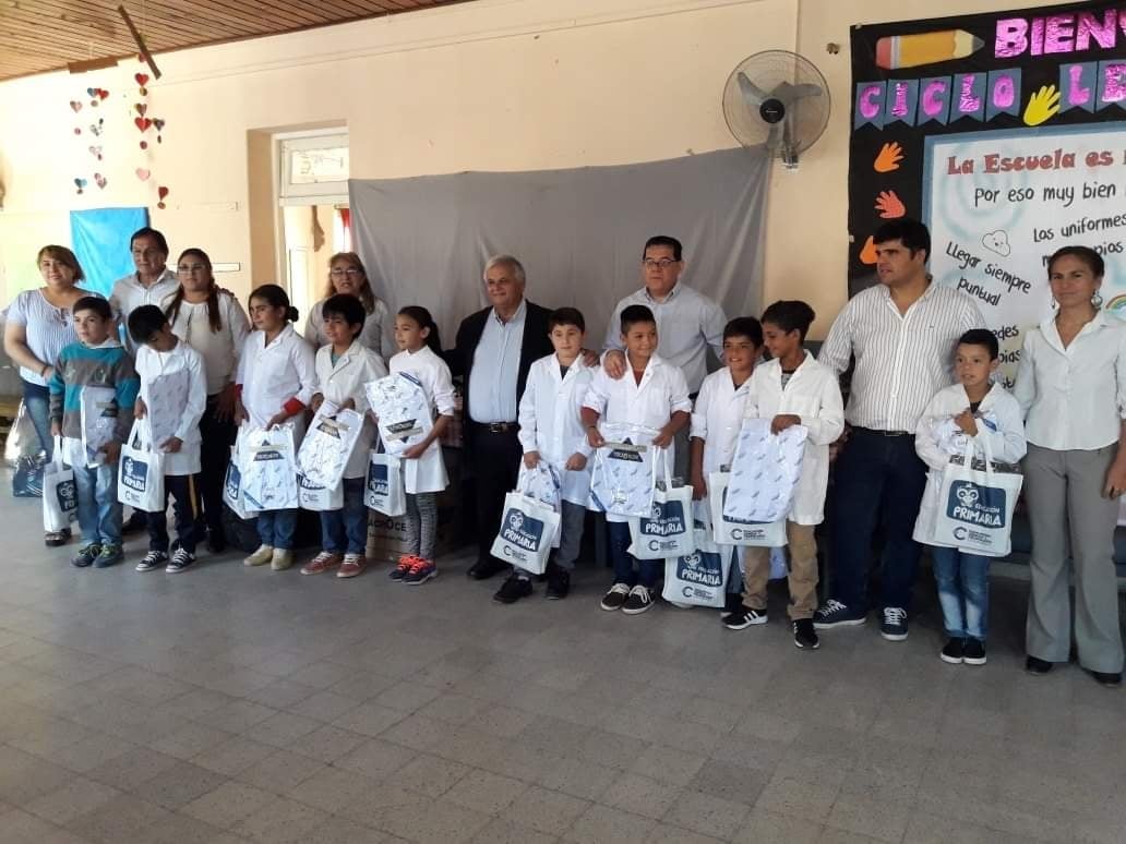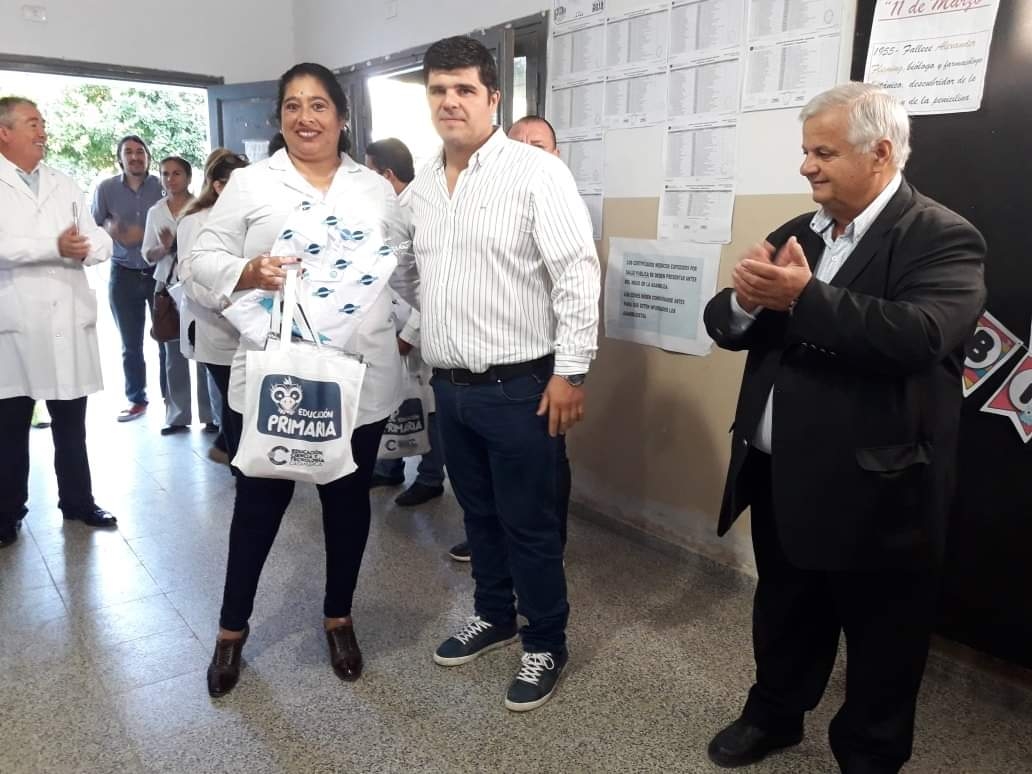 A primera hora en la Escuela N° 35 "Prof. Gustavo Ferrary" de la localidad de Icaño, comenzó la entrega con la participación del intendente de Icaño, Pío Carletta , senador Ariel Espinoza, presidente del Concejo Deliberante, Franco Carletta, supervisor pedagógico, directores, docentes, padres de familias y alumnos.