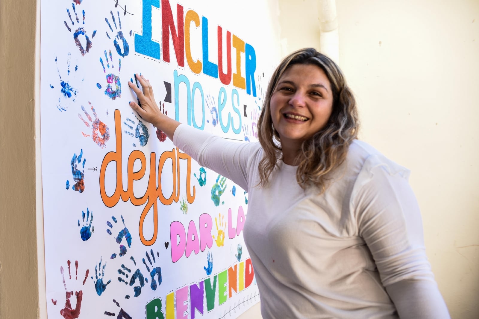 “Incluir no es dejar entrar, es dar la bienvenida” reza la frase rodeada de manitos pintadas, mientras desde el Jardín apuntaron a generar espacios oportunos e inclusivos considerando que “detrás de una discapacidad, siempre reside una persona dispuesta a luchar por ser uno más”.