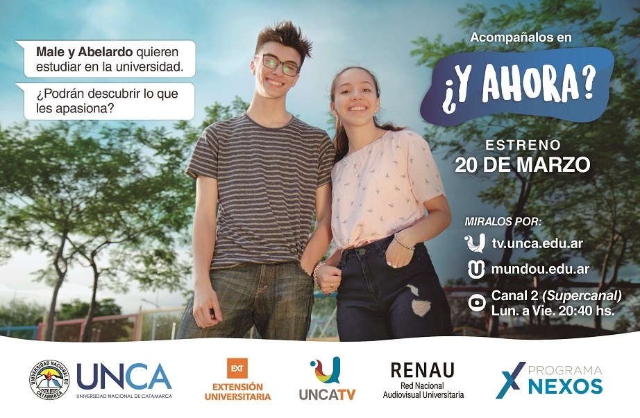 Cabe destacar que la producción de ¿Y Ahora? es una de las acciones que la Secretaría de Extensión de la UNCA lleva adelante en el marco del programa NEXOS, perteneciente a la Secretaría de Políticas Universitarias, y que tiene como fin la articulación entre el nivel secundario y la universidad. La serie también se emitirá a través de la plataforma Mundo U en las señales audiovisuales de todas las universidades del país.
