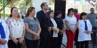 El acto de inauguración del ciclo lectivo se llevó a cabo en la plaza principal del pueblo, donde también se entregaron guardapolvos a los niños de la escuela primaria.