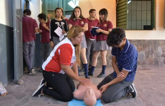 El equipo de enfermería de la dirección de Atención Primaria de Salud, dependiente de la Secretaría de Salud y Protección Ciudadana de la Capital, a cargo del Dr. Juan Manuel Zelarayán, dictó un curso de "Primeros auxilios- RCP" a 150 alumnos del turno mañana de la Escuela Municipal "Miguel Cané".